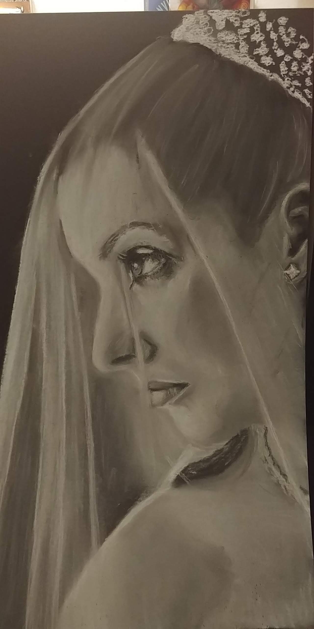 One custom 12" x 18" black & white pastel portrait only (no body shots or couples or groups)