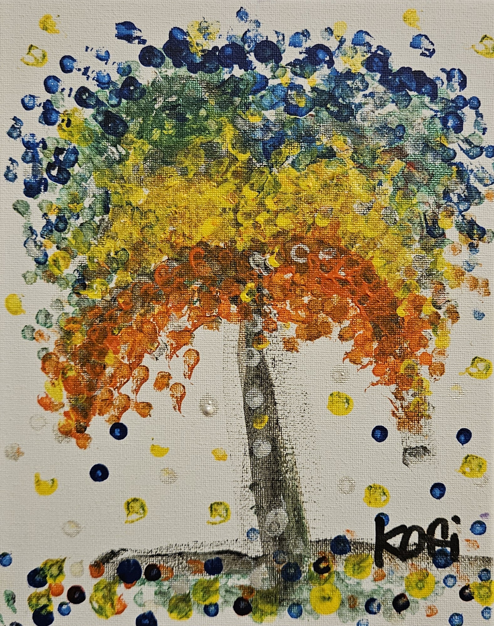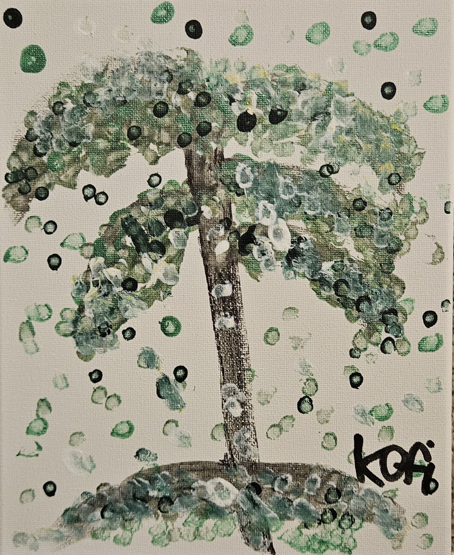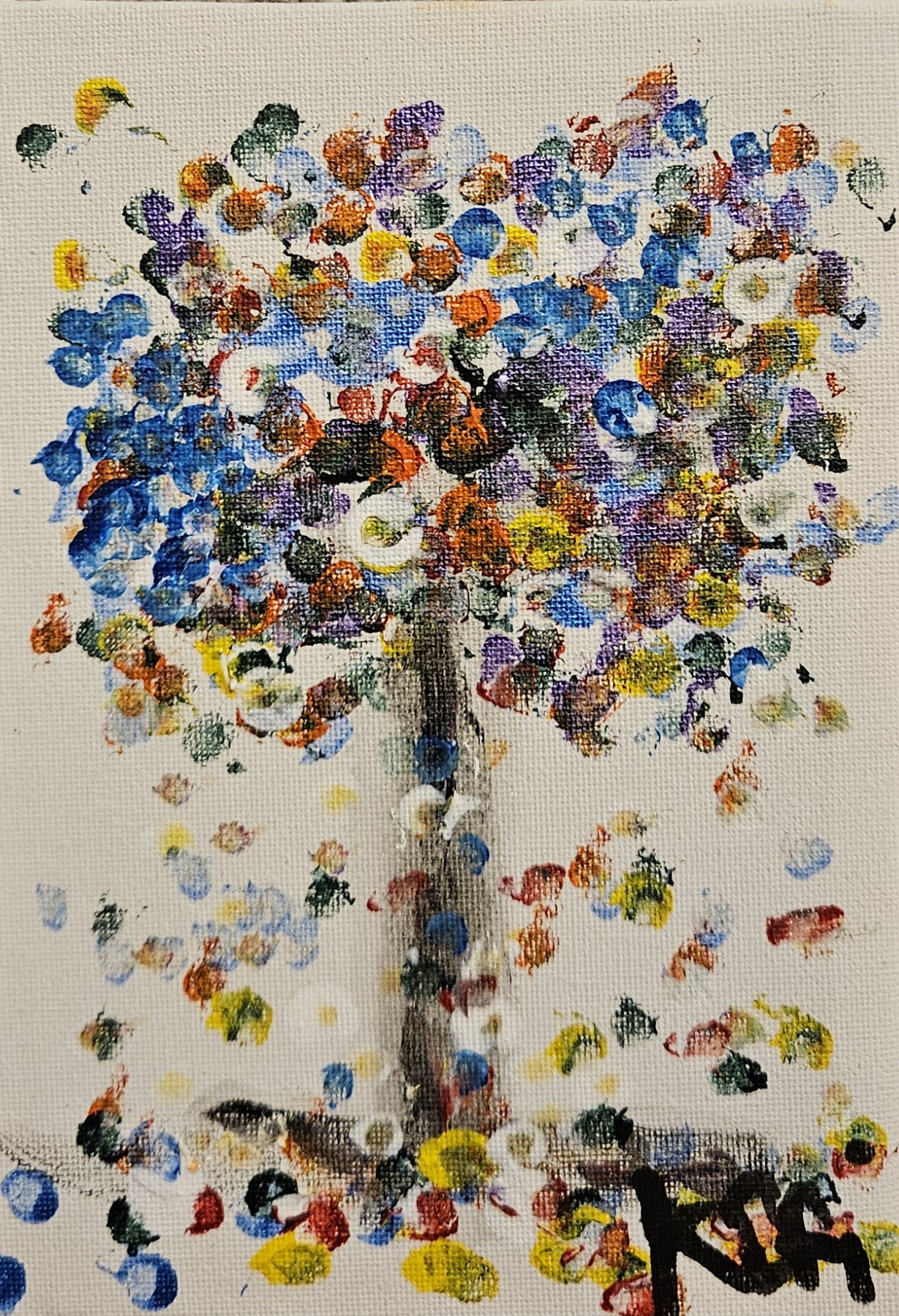 Let your creativity bloom with a custom-designed tree or flower by Kofi Karade. Choose up to five colors from the KolorList—red, green, yellow, pink, white, orange, blue, purple, black—and Kofi will bring your vision to life using his signature pointillism technique.