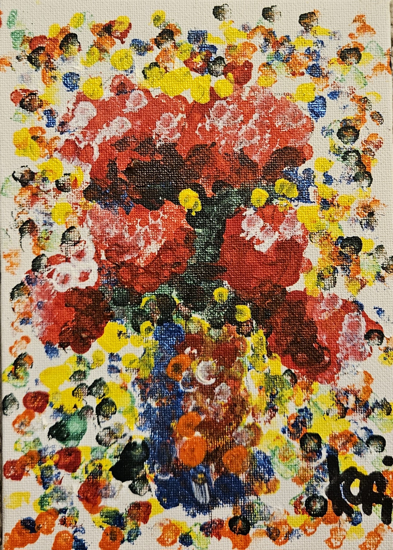 Let your creativity bloom with custom-designed flowers by Kofi Karade. Choose up to five colors from the KolorList and Kofi will bring your vision to life using his signature pointillism technique.
